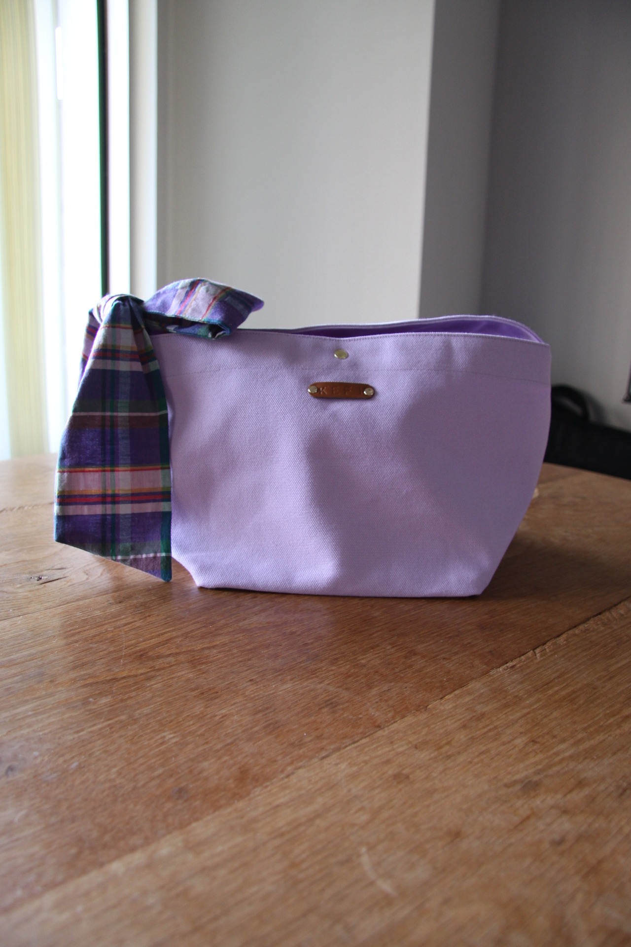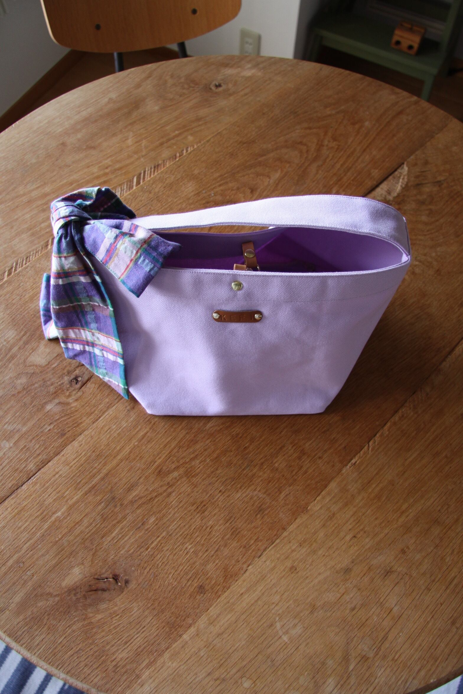 # KEFIスミレノハナトートチェックリボン|大人の気品|華やかな装いに最適なトートバッグ【KEFIハンドメイド】